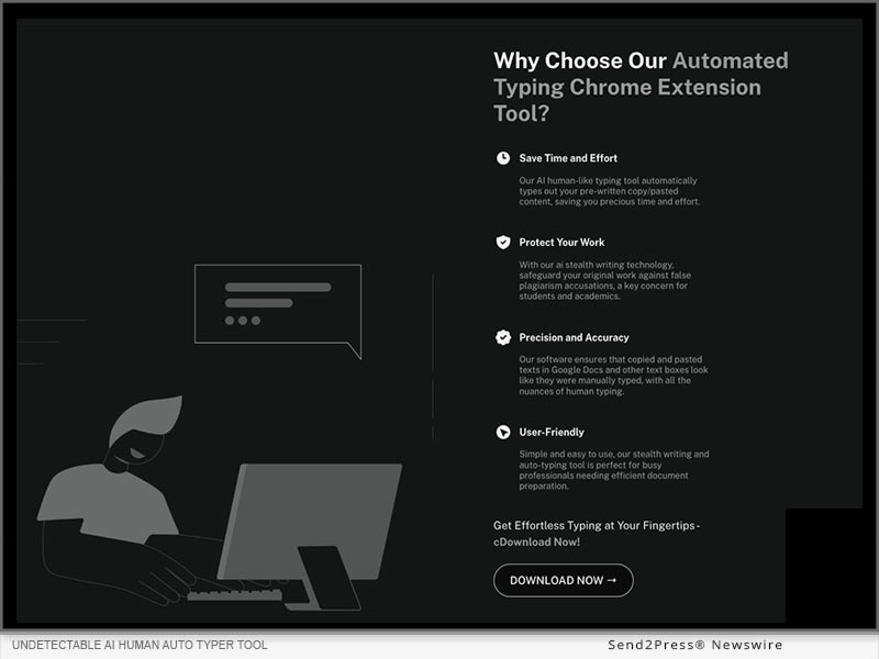 SHERIDAN, Wyo., Dec. 13, 2023 (SEND2PRESS NEWSWIRE) — A new Google Chrome extension is now available that allows users to simulate typing in Google Docs. The purpose is to allow users to realistically replicate the action of live typing in Google documents. According to Undetectable AI CEO Christian Perry, “The goal of the tool is to ensure pasted content retains the appearance of being manually typed.”
